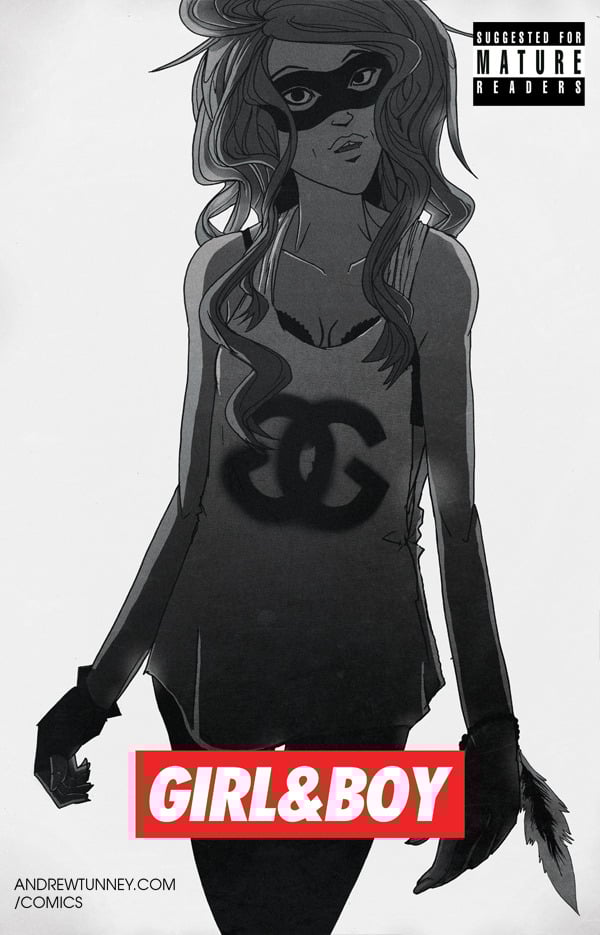 GIRL&BOY is the critically acclaimed debut comic from UK artist/writer Andrew Tunney. Set in the grimey, rain-filled streets of inner city Manchester, England it charts the relationship of two young lovers; one called Girl, the other called Boy.